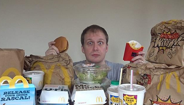 【环球网综合报道】据英国《每日邮报》4月11日报道,近日,来自英国贝德福德郡的YouTube视频博主迈克•杰文斯(Mike Jeavons)进行了为期一周只吃麦当劳食品的挑战,结束后发现体重不仅没增加,反且还减少了5磅(约4.5斤),令人称奇。