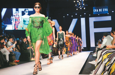 4月19日,在越南胡志明市,模特展示越南时装品牌的服装。当日,为期4天的2018越南春夏国际时装周在胡志明市拉开帷幕。来自越南、法国、意大利、新加坡等国家和地区的设计师和时装品牌参加了本次时装周。