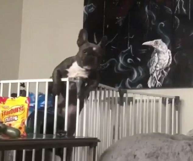 【环球网综合报道】据英国《每日邮报》4月27日报道,美国匹兹堡钢人足球队外接手朱朱•史密斯-舒斯特(JuJu Smith-Schuster)最近在社交媒体上放出了一部有关自家爱犬布吉(Boujee)的视频。视频中布吉为了偷吃糖果,居然摆出了许多高难度姿势设法越过围栏,场面生动令人忍俊不禁。