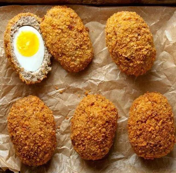 苏格兰蛋是将水煮蛋混合著猪肉、或牛肉之类的绞肉,再抹上面包粉弄成丸子形状后油炸的英式料理。用电饭煲就可以简单制作,可谓是懒人食谱了,科治好来教你如何制作!