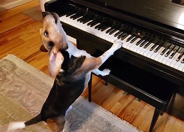 该婴儿的父亲拍下视频记录了这一有趣瞬间。视频中,这只“神奇”的狗狗正在一边按着琴键,一边大声嚎叫,仿佛在为自己的演奏添加声情并茂的表演。正当狗狗兴致正浓的时候,家中尚不会走路的一名女婴不知是不是觉得狗狗的“表演”略显聒噪,只见她迅速爬到了狗狗身边,将身子直起来,然后一把将狗狗的爪子从钢琴凳上拉下来。