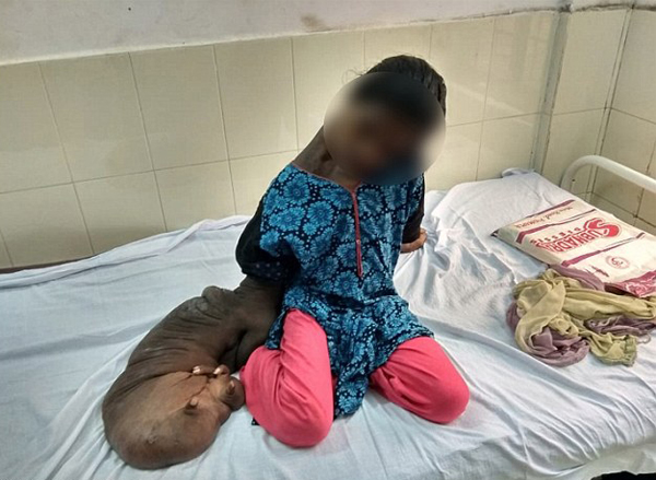 【环球网综合报道】据英国《每日邮报》8月8日报道,印度东部奥里萨邦一名年方18的花季少女因身患罕见纤维瘤而导致其整条右臂生长畸形,重达22磅(约10千克),而她的手指就如同动物的爪子一般,看起来十分骇人。目前,她即将接受免费治疗,而治疗效果如何,尚无法定论。
