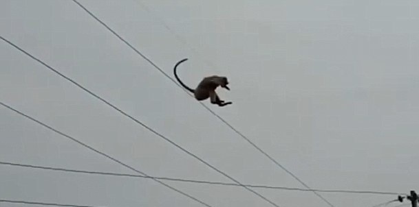于是他们向野生动物紧急援救组织寻求帮助。在切断供电后,三名志愿者爬上输电塔,用工具解救猴子。结果猴子奋力挣扎,无意中将绳子挣脱,立即从高空跃下,飞速逃离。(实习编译:曹威 审稿:朱盈库)