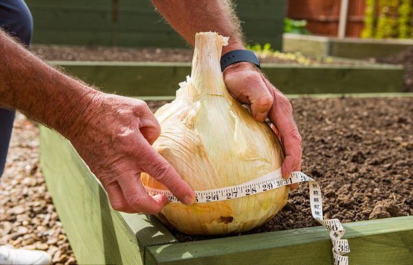 戴维•斯托瑟说:“过去50年,我一直为家人种蔬菜,但我想尝试种植真正的大型蔬菜。”于是,4年前,他开始了这项计划,每年圣诞前夕埋下种子,开始精心培育,直到来年8月份收获。他种植作物的尺寸每年都在稳步增长,但此前最重的一颗洋葱只有3.7公斤。所以他说:“当我挖到这颗洋葱的时候简直不敢相信。”