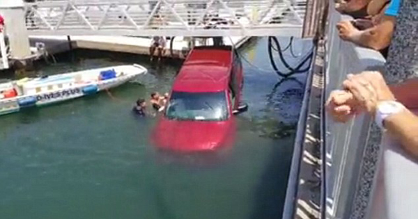 据悉,救援工作进展得非常顺利,所有人都从汽车上成功逃脱,毫发未损。事故发生几分钟后,这辆红色汽车沉没在太平洋中。