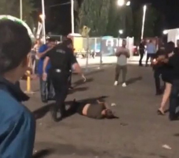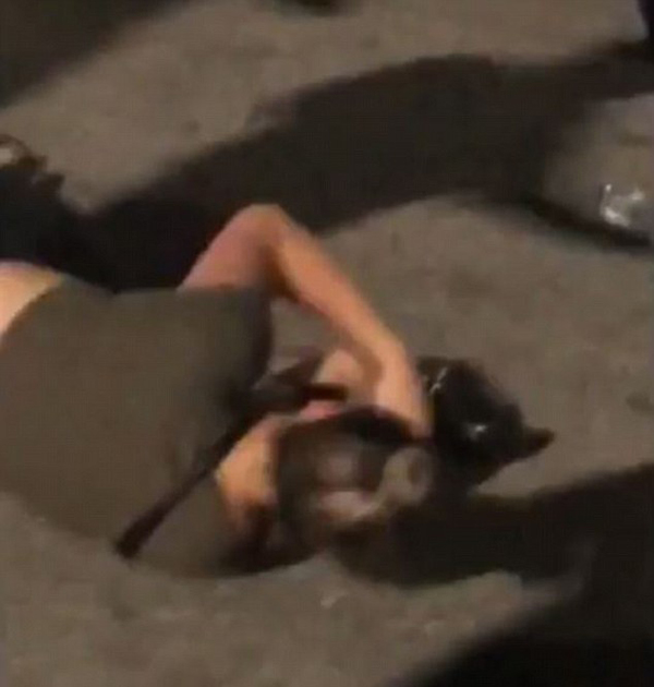 在视频中,这名男性警官试图穿过人群阻止斗殴者。这时一名穿绿色T恤的女子大喊“警官”,但被这名警官迅速击倒,身体和头都撞到了水泥地面上。随后这名警官径直向斗殴者走去。而这名女子则捂着头蜷缩在地上,之后被旁人扶起。目前,还不清楚这名警官和受伤女子的身份。