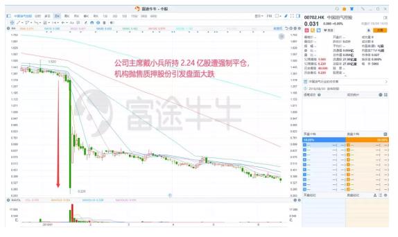 今年1月19日,中国油气控股一日暴跌78.46%,究其原因,原来是公司主席戴小兵所持2.24亿股遭强制平仓。大股东股权质押在股市中并不鲜见,但A股与港股对于股权质押的监管有很大差别。A股中大额股权质押需经监管部门同意才能卖出,不允许强行平仓,而港股则不同,券商有权强行平仓。正因如此规定,在金融机构强行平仓,抛售戴小兵所质押巨量股份后,引发了本身即为小盘股的中国油气的大跌。
