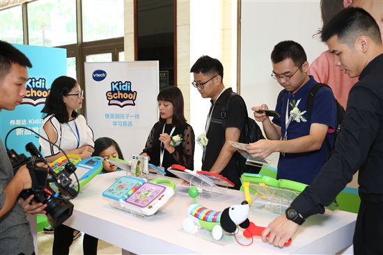 发布会上,与会嘉宾体验伟易达kidischool新产品
