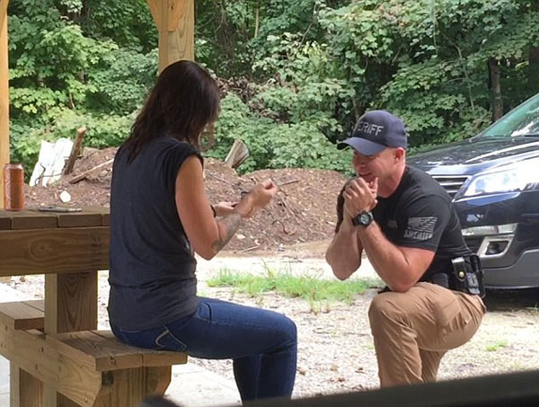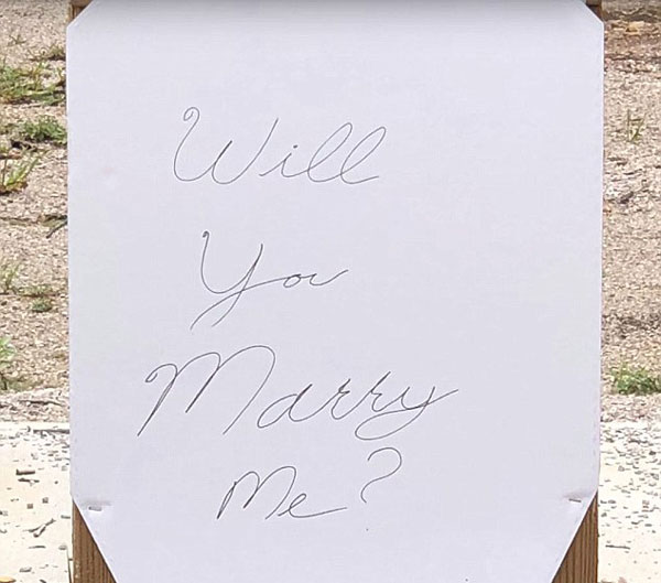 【环球网综合报道】据英国《每日邮报》8月28日报道,美国肯塔基州刘易斯县的副警长马克·斯帕克斯(Mark Sparks)把交往一年的女友带回他们初次见面的射击场,用枪和定制的靶子向女友阿曼达·里德(Amanda Reeder)求婚。