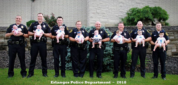 【环球网综合报道】据英国《每日邮报》8月29日报道,近日,美国肯塔基州的厄兰格警察局在网上分享了一张萌翻众人的温馨照片。照片中可以看到,8名警察身穿制服抱着自己的孩子排成一行,自豪地摆出各种姿势。