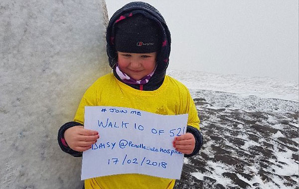 据报道,黛茜只有大约19公斤重,3英尺(约0.9米)高,小小的她便立下徒步登山220英里(约354公里)的宏伟目标,她还会记录每一次登山实况并发在Go Fund Me(国外,平台)上发起公益募捐。最终,她成功筹集了3000英镑(约合人民币2.7万元),并全部捐赠给了Pendleside临终关怀这一慈善机构。