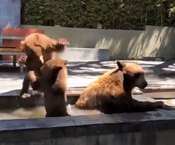 据悉,这段两分钟的视频是由Jukin Media发布的。视频显示,熊妈妈坐在用石头砌成的长方形喷泉池里,开心地一动不动,无暇理会正在嬉笑打闹的孩子。而两只幼崽则在池里跳来跳去,又在院子里跑来跑去,互相打闹。