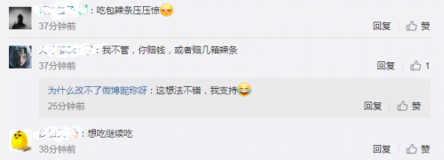网友4:卫龙辣条挺你!爱吃辣条的赞我!