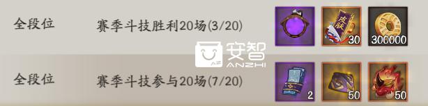 全段位玩家只需要参与斗技20场就可以领取两张蓝符和五十个金蛇皮再加50个逢魔之魂。要是能拿到二十次胜场更是还有一个头像框加皮肤券和30万金币可以领取。所以你心动了吗?心动不如行动,斗技走起吧,阴阳师们!