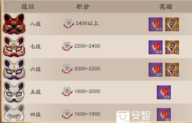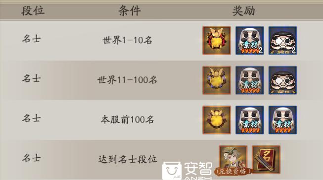 这张图上的后四个奖励都是达到名士段位的阴阳师才有资格购买哦。当然价格也令人咋舌。除此之外还有排名奖励。