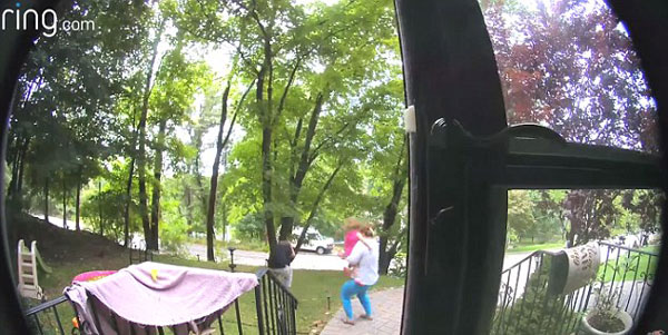 这惊险的一幕恰好被他们前廊的监控摄像头记录了下来。视频中可以看到,一家三口在走进前院的时候,一道闪电伴随着一声惊雷突然在离他们不远处从天而降。怀抱着小女儿的妻子立即跌跌撞撞地跑回了室内,丈夫也捂着头紧随其后。站在安全区的妻子对丈夫说道:“亲爱的,我觉得那道闪电好像击中了什么东西,我能感觉到 。”