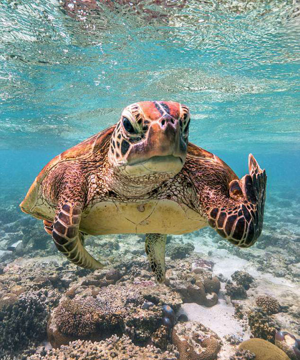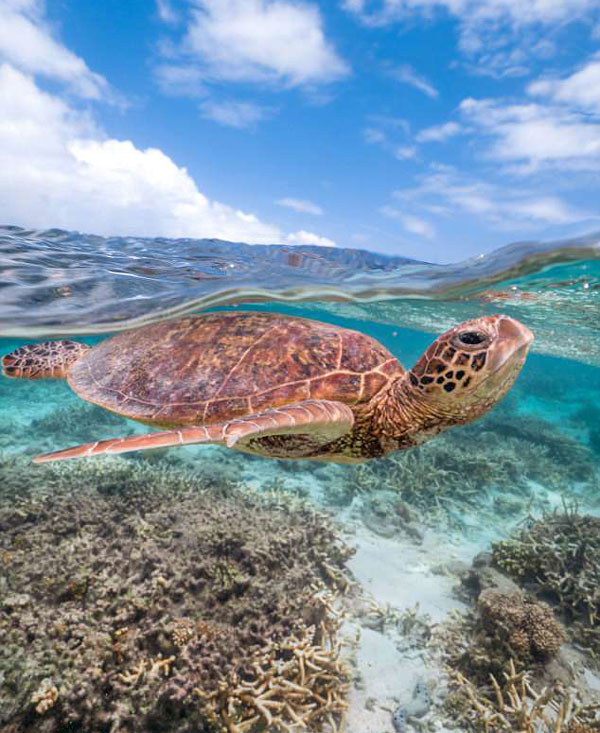 马克当时身处大堡礁的埃里奥特夫人岛,正畅游于珊瑚礁附近,而一只海龟对着他“粗鲁地竖起了中指”。马克表示,这只“粗鲁的”海龟已经和他一起游了很久了。当马克游开时,那只海龟似乎感到被冒犯了,并一直跟在马克身旁。马克还说道:“埃里奥特夫人岛上有一个如水晶般清澈透明的咸水湖,我每次去拜访的时候都有海龟在周围游动。这些海龟天性十分好奇,喜欢跟着人。”