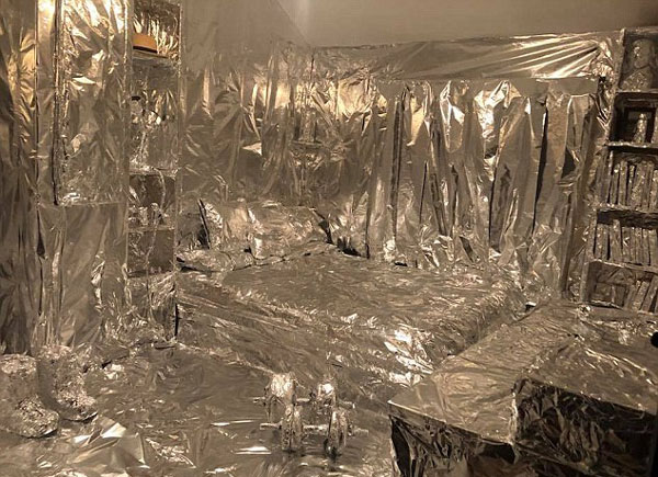 【环球网综合报道】据英国《每日邮报》9月13日报道,英国兰开夏郡的26岁男子罗伯托•博纳米尼奥(Roberto Bonaminio)、28岁的杰克•恩特威斯尔(Jack Entwistle)和29岁的马克•亚瑟(Mark Arthur)决定在室友度假的时候上演一出恶作剧。他们在五天的时间内花了8小时用18卷铝箔纸把室友的床、桌子和窗户包裹起来,随后将这段视频上传到了脸书上。