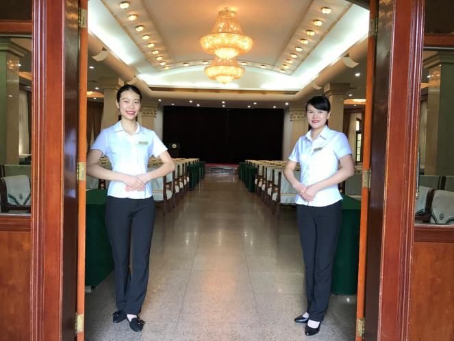 现主要延续礼堂功能,为艺术系学生排练所用,堂内时常传出轻扬歌声,中航物业主要提供会务接待、会场清洁等服务。(在小礼堂的门口接待的中航小姐姐,微微一笑很倾城~)