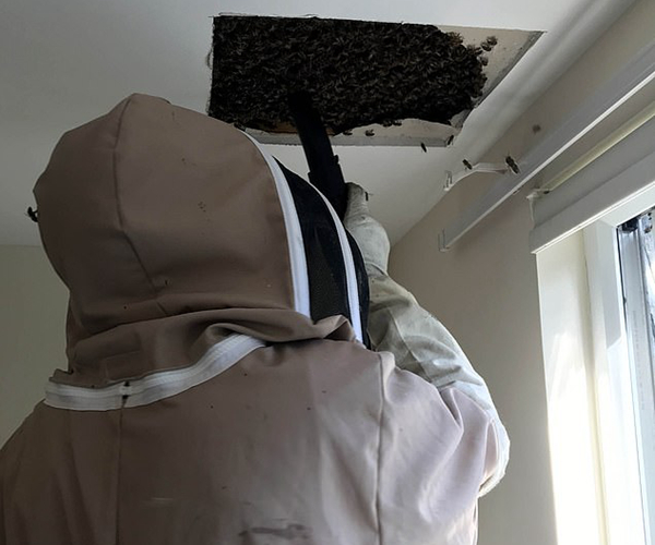 据悉,此蜂群是在2007年夏天开始在此筑巢的,直到一名学生租客搬走后,房东才发现了这惊悚一幕。