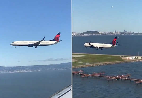 【环球网综合报道】据英国《每日邮报》9月26日报道,近日,在美国旧金山国际机场上空,两架待着陆的客机“并肩”齐飞,随后同时降落在机场两条平行的跑道上。其中一架飞机上的一名乘客用手机记录下了“两机同步降落”的全过程。