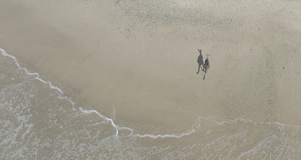 布兰登当天注意到有些人一直看着大海,于是,他拿出了无人机记录下了这一令人惊讶的场景。他说,“起初我只是好奇大家在看什么,我以为那可能只是海豚或是海湾里的其他生物,有人说他们看到一只袋鼠在海里,我很困惑,所以决定仔细看看。当它的头露出水面时,我把镜头拉近了点,看到的确是一只袋鼠。我真的很惊讶,谢天谢地,它正往岸边游呢。”