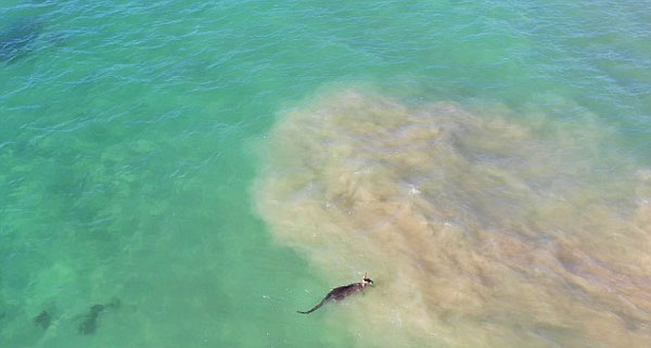 【环球网综合报道】据英国《每日邮报》9月27日报道,9月23日早晨,澳大利亚科夫斯港的居民布兰登•路易斯(Brendan Lewis)在科罗拉海滩附近散步时,用无人机抓拍到一只袋鼠在水里游泳的镜头,十分罕见。