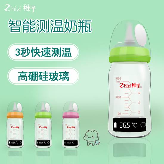 稚子智能测温奶瓶当前已经申请国家专利,专为测量奶瓶内液体温度而设计的,非接触式智能测温奶瓶。可协助调乳、喝水等情况,以确保婴幼儿在最适宜的温度饮用。
