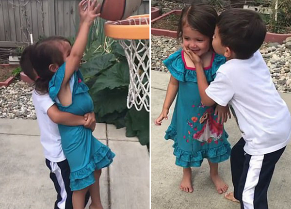 【环球网综合报道】据英国《每日邮报》10月16日报道,近日,一位来自美国加利福尼亚州的母亲(Sarahanne Mora)在网上分享了她儿子和女儿投篮的视频。画面中,一个小女孩踮起脚尖试图投篮,但并未成功,哭了起来。她的哥哥立即过来安慰她,并把球递给她,然后把她抱起来,助她成功将球投进了。画面十分温馨,令人感动。