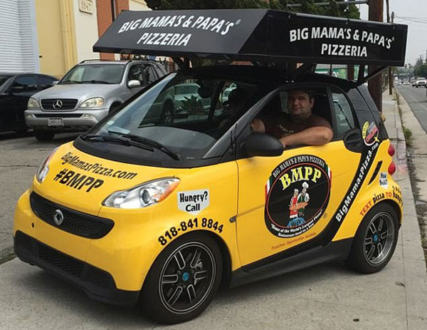 Big Mama's&Papa's曾使用传统的货车来运送巨型披萨,但如今它已经拥有了专门的定制车辆。车身为黄色和黑色,印有连锁店的电话号码和网站名称,某些部位还写有“Big Mama&Papa's”的标志。最引人注目的是车顶上安装着巨大的收纳箱,运送期间可以放置巨型比萨。(实习编译:张璇 审稿:朱盈库)