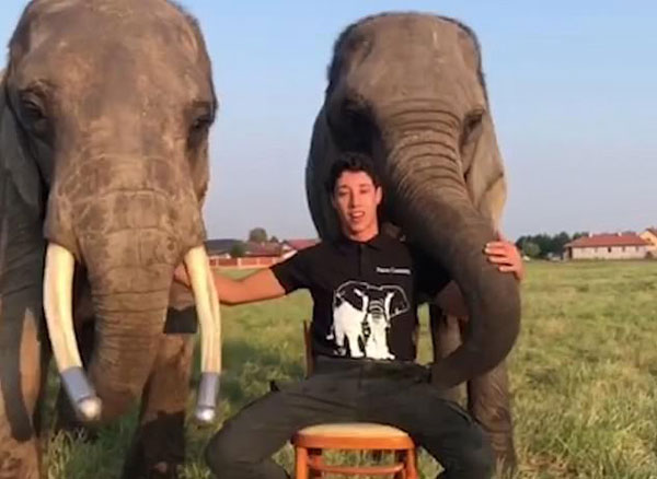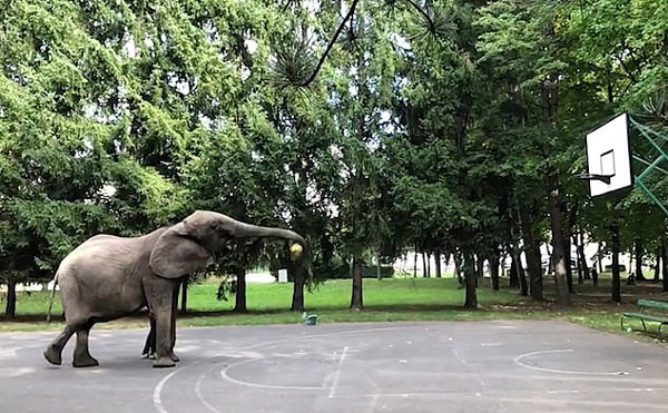 雷内是家族第七代训象表演者,一幅视频画面显示,他的大象金巴可以从三分线后面往篮筐里投球,还可以玩杂耍、爬墙、转呼啦圈,甚至让雷内站在它的象牙上。“大象比我们想象的要聪明,我总是试着教我的大象做以前从未见过的事情。”雷内表示,这些事实表明,动物与人类是可以互相信任的。
