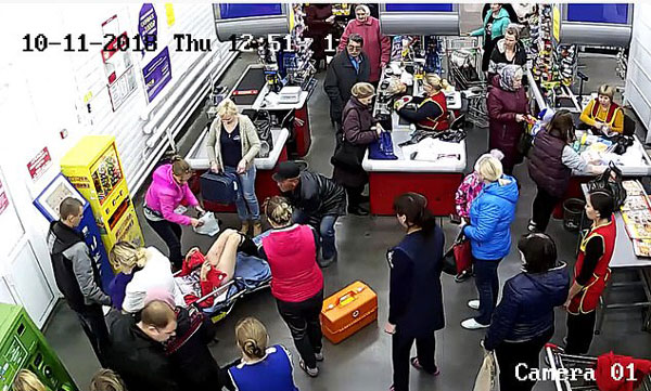 【环球网综合报道】据英国《每日邮报》10月31日报道,近日,在俄罗斯西伯利亚的鄂木斯克地区,一家超市的摄像头记录了这样一幕:一名孕妇结账时突然羊水破了,随后就地生下了孩子。