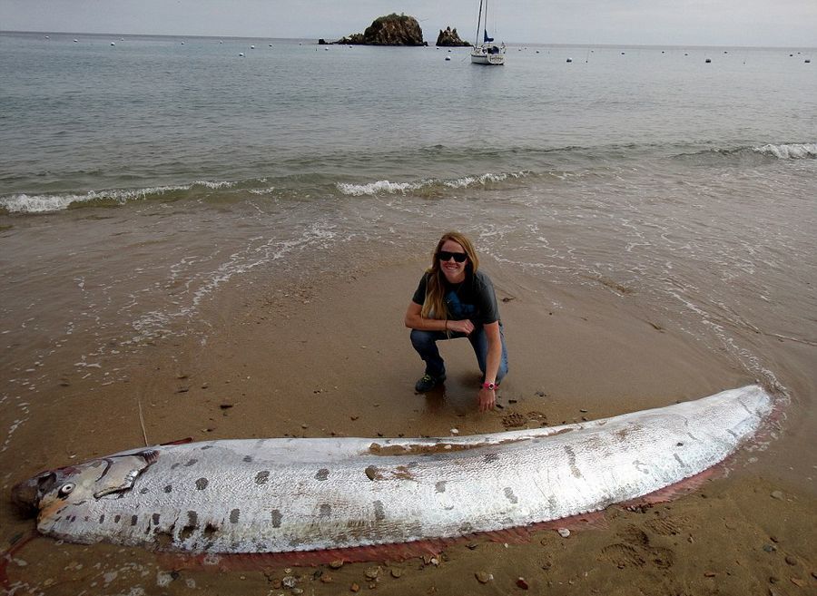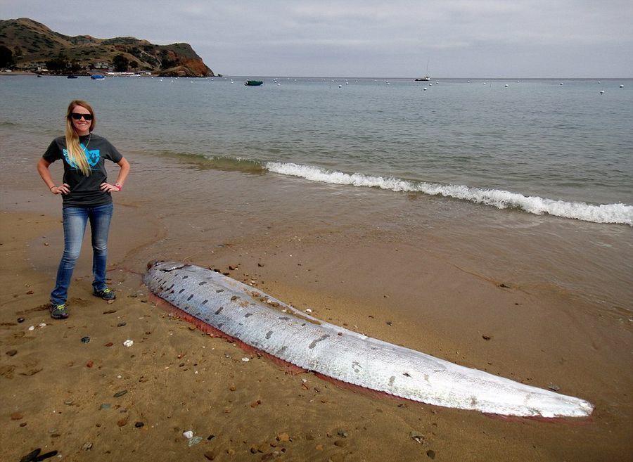 这条巨大的皇带鱼由当地海滨巡警发现,被冲上海滩时已经死亡,且头部遭到海鸥啄食变得残缺不全。研究这种鱼类的科学家表示,虽然这条皇带鱼体长惊人,但其实还可长到50英尺(约15.2米)长。