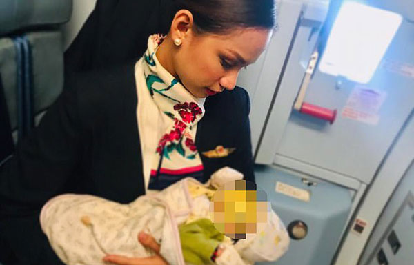 【环球网综合报道】据英国《每日邮报》11月8日报道,当地时间11月6日,在菲律宾的一架航班上,一个婴儿的妈妈在飞机上把配方奶喂光后婴儿哭泣不止,一位好心的空姐走近,用自己的乳汁为这个正在哭泣的婴儿喂奶。