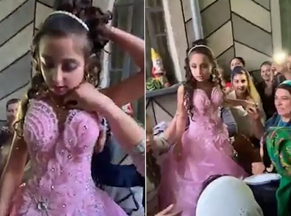 据悉,这场特殊的吉普赛传统婚礼在克拉约瓦市举行。在现场表演的歌手艾利克斯•德拉•卡拉卡拍下了相关画面。8岁的新娘穿着略大的粉红色礼服,被簇拥在兴奋的人群中。她用手指梳了梳自己的长卷发,又拉了拉裙子,等待新郎准备就绪。10岁的新郎一直随着卡拉卡的音乐跳着舞,十分欢乐。这位歌手随后对着新郎说,“放下玩具,今天你将成婚!”新娘便站上一张高脚凳,裙摆垂下,十分漂亮。