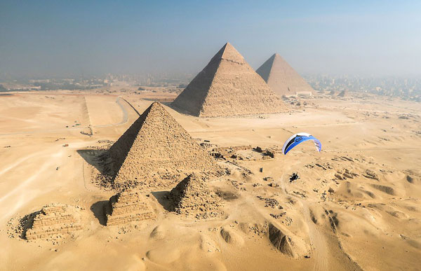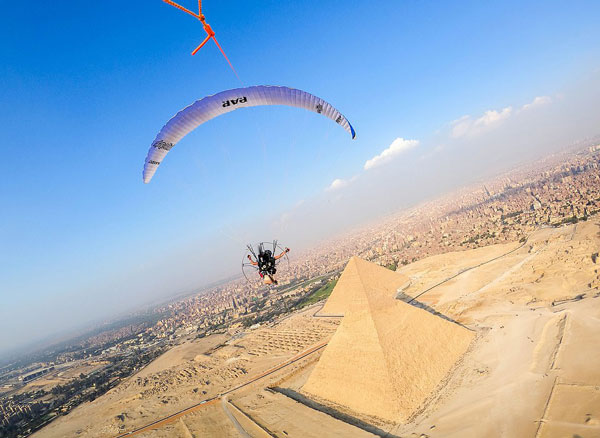 视频显示,奥伯特在埃及城市上空滑行,来回穿梭于三座不朽的金字塔之间。滑翔伞两侧伞翼在455英尺(约138.6米)高的吉萨大金字塔上来回摆动。奥伯特先生所拍摄的视频展示了古代石质建筑的惊人杰作,随后,他继续在卡弗尔金字塔上空盘旋了一段时间,,滑行回来,拍摄了城市上空的美丽日落。