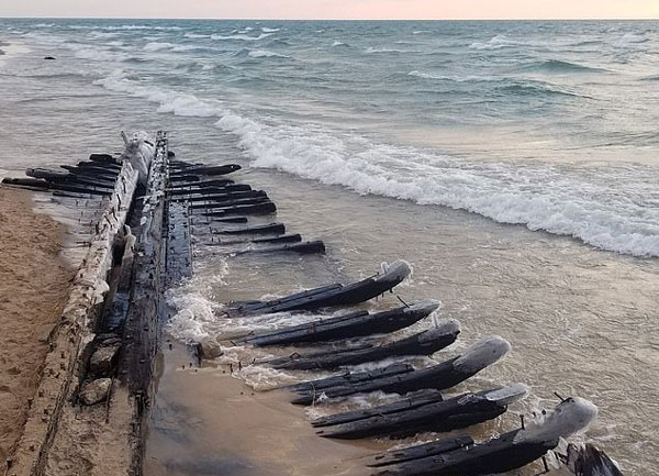 【环球网综合报道】据英国《每日邮报》12月12日报道,近日,美国密歇根湖岸边出现的一艘神秘船只的残骸引起附近居民议论纷纷,他们认为这就是1878年在暴风雨中消失的帆船“L.C.伍德拉夫(L.C. Woodruff)号”。