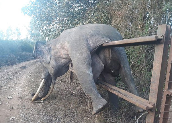 据当地媒体报道,这头大象先前成功翻过这道篱笆,在农田里填饱了肚子后准备出来。不幸的是,这次它被高高的篱笆卡住了,身体无法动弹。当地居民发现大象后立即将其从篱笆上推了下来,但此时大象已经死去。