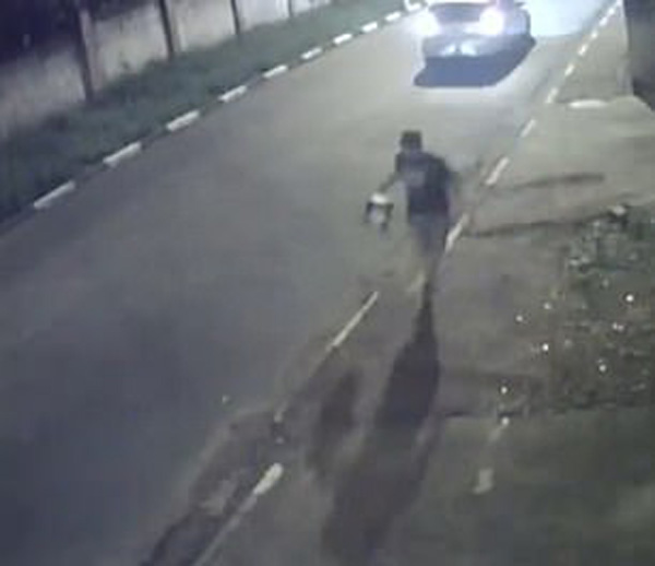 从视频中可以看到,该事件发生在晚上。一位路人正手提一袋东西走在路边,身后突然有一辆车追上他,车内的人试图抢夺他手中的东西。就在劫匪快要赶上他时,该路人急中生智,迅速掉头向反方向逃跑,劫匪也迅速倒车,追逐他。