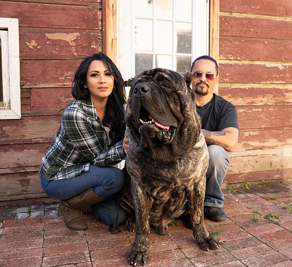 (柯蒂斯夫妇养的大型獒犬体重达到96公斤)