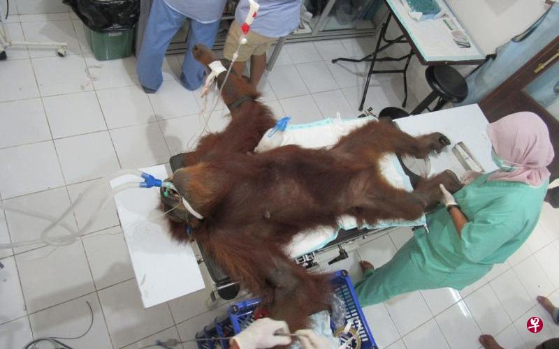 【环球网综合报道】在印度尼西亚苏门答腊岛上的亚齐省,一只雌猩猩被气枪打成重伤,身中74粒铅弹仍然活了下来。