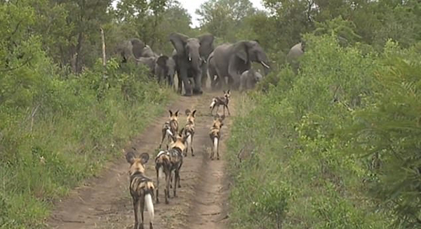【环球网综合报道】据英国《每日邮报》3月14日报道,近日,一段视频记录了南非一群大象为保护幼崽吓退成群野狗的一幕,场面惊心动魄。