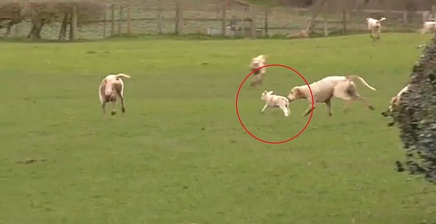 (一群猎狐犬闯入私人牧场,追赶羊群,并咬伤一只羊羔)