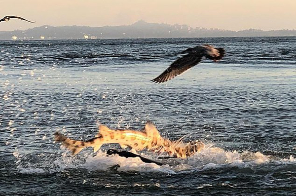 当天上午,在旧金山湾监测游泳比赛的加州女子托丽•戈尔曼(Tori Gorman)亲眼目睹了恶魔岛附近一头饥饿的海狮疯狂地撕咬一头豹鲨,她感到十分震惊,于是拍下了相关视频。视频显示,这头海狮凶狠地拍打着豹鲨,甚至一度将豹鲨抛向空中,然后让它狠狠地落到水中,水花四溅。戈尔曼称:“这是可以写进《国家地理》杂志的一刻。”