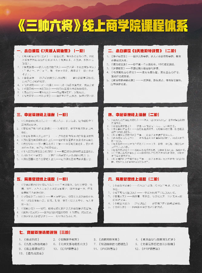 三帅六将系统化、定制化、进阶化的线上课程体系,帮助品牌方团队进入发展快车道