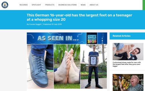 据外媒报道,德国柏林16岁的居民拉尔斯•莫特茨作为穿,码57号鞋的少年,被记入吉尼斯世界纪录大全。