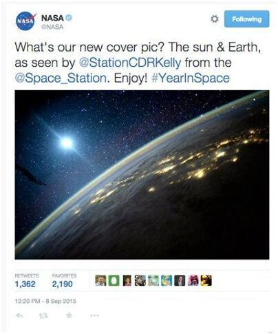 据报道,NASA于9月8日在拥有1200万粉丝的官方推特放上一张封面照片,这是从国际太空站拍摄的,贴文指出在地球旁的星体为太阳。不过,这可骗不过太空迷的眼睛,他们纷纷指出那个是月亮不是太阳。