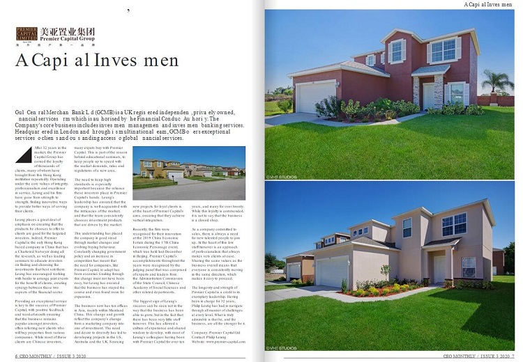继2018年荣获国际知名管理杂志CEO Monthly(《CEO月刊》)颁发的Global CEO Excellence 2018 Awards,即2018全球,执行官,奖之后,美亚置业集团董事长Philip Leung(梁健立)先生再次凭借,影响力荣登2020年3月CEO Monthly封面人物。