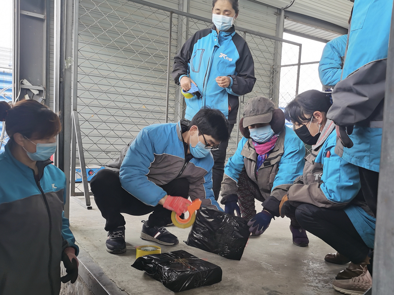 3117袋分装完成的教辅回到保定天天快递站点后,因书本棱角容易受损,天天快递工作人员又对其进行了“双重保护”。“我们必须保障这些书本送到每个同学手上时,不潮、不皱,干干净净。”