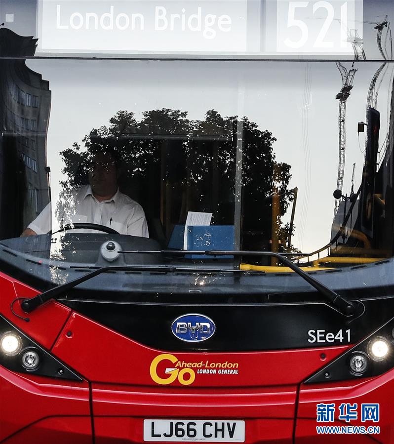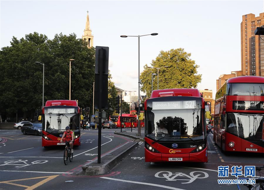 8月15日,在英国伦敦,中国车企比亚迪公司与英国客车制造商亚历山大·丹尼斯有限公司联合设计生产的电动公交车在路上行驶。已新华社记者韩岩摄